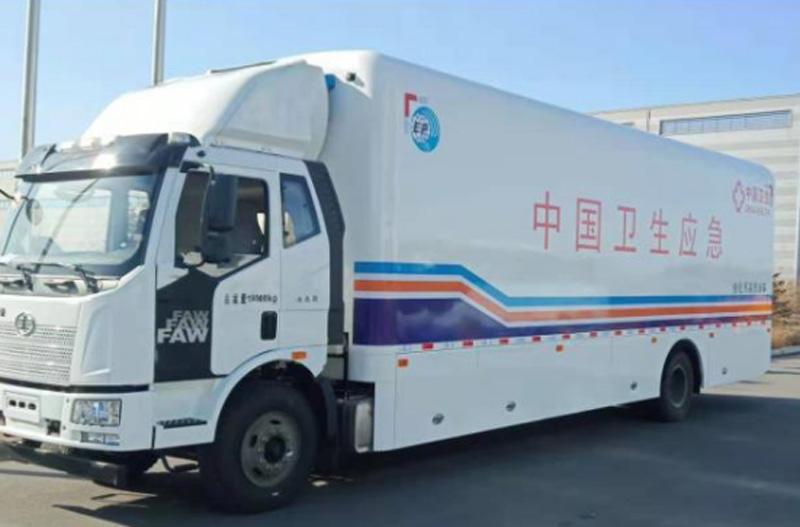 顯浩核化污染洗消車應運而生,該款車具有多系統(tǒng)高度集成、全天候機動響應、水電自我保障等突出優(yōu)點。該車輛滿載87噸,擴展后的工作空間長達15米,寬7米,高5米,能有效防止交叉污染,最大程度地保障傷病員和救援人員的生命健康安全。傳統(tǒng)國內外洗消作業(yè)以公眾洗消帳篷為主,存在自身防污去污難、功能單一、智能化水平不高等問題。顯浩研制的多功能核化污染洗消車,提供了突擊處置、智能洗消等功能為一體的化學事故洗消處置技術裝備保障,可第一時間快速進入污染區(qū),完成應急處置和人員救助。