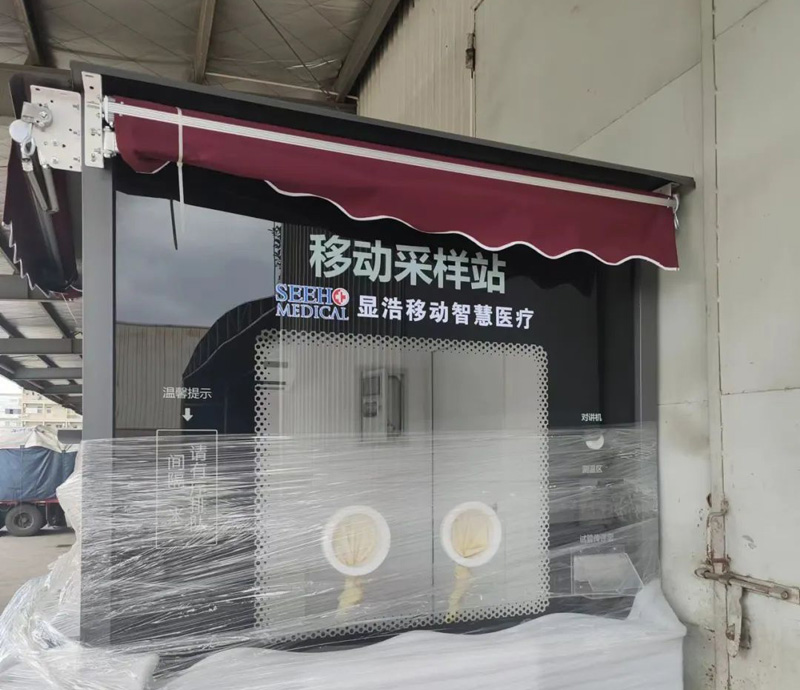 湖北顯浩運(yùn)營(yíng)總監(jiān)蔣存金向大家介紹了此次捐贈(zèng)的百變多功能核酸采樣亭是公司員工加班加點(diǎn)趕制完成,其中兩臺(tái)已先期發(fā)往海南,8月31日啟運(yùn)的兩臺(tái)將發(fā)往西藏。百變多功能核酸采樣亭配置齊全,包含有自動(dòng)對(duì)講、測(cè)溫等裝備,安裝了新風(fēng)空調(diào)系統(tǒng),可以保證采樣亭內(nèi)工作環(huán)境的零污染。它還可以與移動(dòng)核酸檢測(cè)車(chē)實(shí)現(xiàn)遠(yuǎn)程連接,進(jìn)一步提高工作效率。核酸采樣亭可以在完成采樣工作之后,把它轉(zhuǎn)化為執(zhí)法亭、早餐售賣(mài)點(diǎn)、休息室等形態(tài),繼續(xù)發(fā)揮作用。