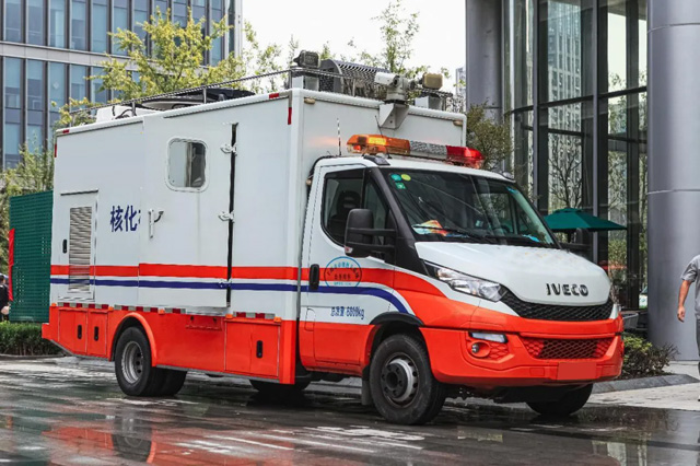 保障車很多種,我們認(rèn)識(shí)的有救護(hù)車,軍警車,消防車等跟我們生活相關(guān)的應(yīng)急車輛。民防車也跟我們安全息息相關(guān),也就是核化應(yīng)急監(jiān)測(cè)車。核化應(yīng)急監(jiān)測(cè)車的整車造型非常方正。顏色采用醒目的上面白色下面橙色。中間有灰色的線條來涂裝。外形看是很霸氣結(jié)實(shí)的。國(guó)內(nèi)比較常見的方式警示燈大多是采用左黃右紅的布置。它是用了長(zhǎng)軸距的底盤。搭載了3.0發(fā)動(dòng)機(jī)和8AT的變速箱。最大的負(fù)載重量是7噸。總質(zhì)量是6.6噸。算上物資和人員可以滿足7噸的標(biāo)準(zhǔn)。所以這個(gè)底盤車型可以用來改裝通信車,救護(hù)車,工程車等比較友好。
