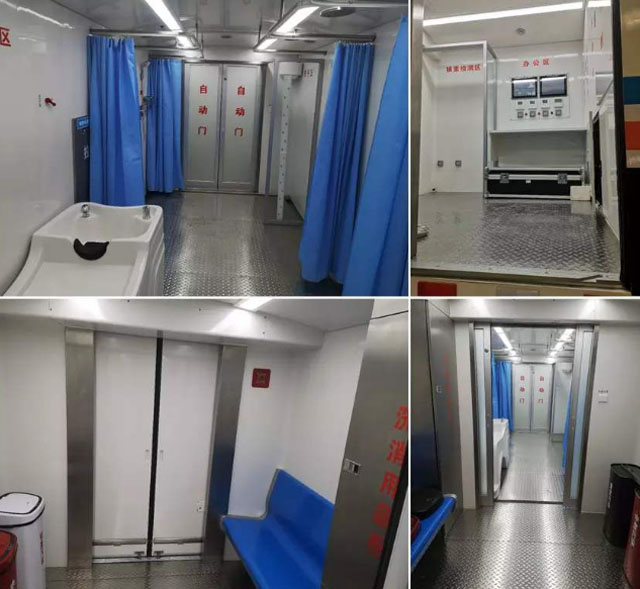 核化污染洗消車就是一座移動的核救治醫(yī)院。高效移動趕赴現(xiàn)場,去傷病員表面的放射性物質(zhì)污染。核化污染洗消車分為三個區(qū)域,污染區(qū),洗消區(qū),檢測區(qū)。污染檢測區(qū)的儀器可以檢測身體核污染的量。評估身體被污染水平。污染較輕的應(yīng)急人員手持表面污染檢測儀,精準(zhǔn)定位傷病員的污染部位和面積,重點(diǎn)清洗。污染比較重的就需要救護(hù)人員幫忙脫掉衣物,洗消區(qū)進(jìn)行精細(xì)清洗。洗消好后再到檢測區(qū)檢測洗消后身體輻射量能不能達(dá)標(biāo)。
