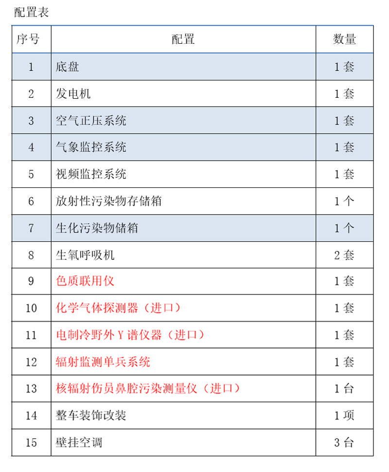 核化應急監(jiān)測車配置