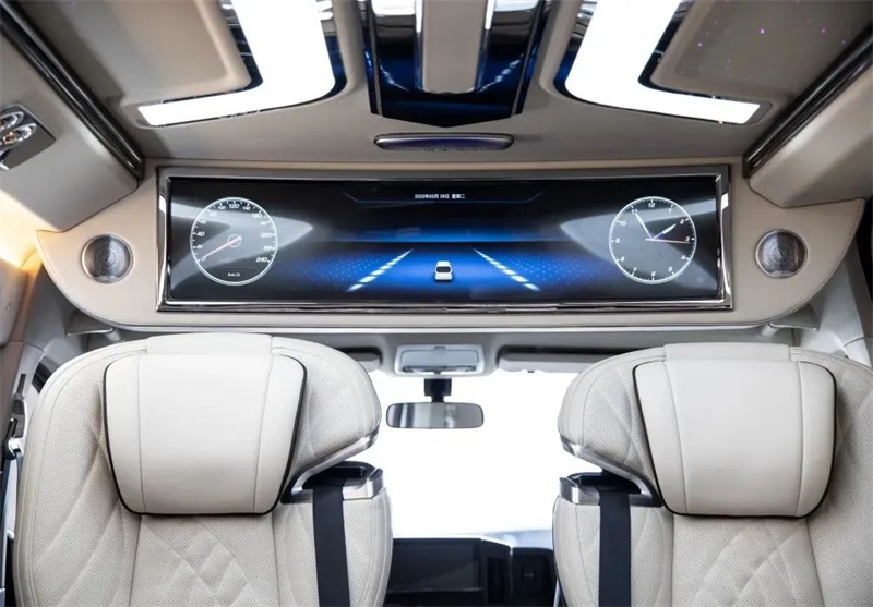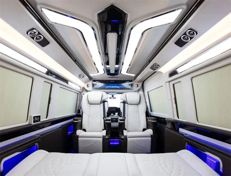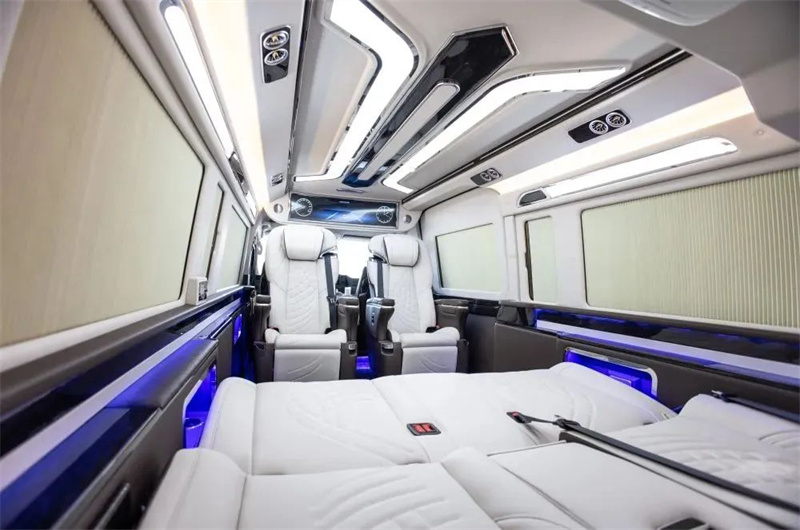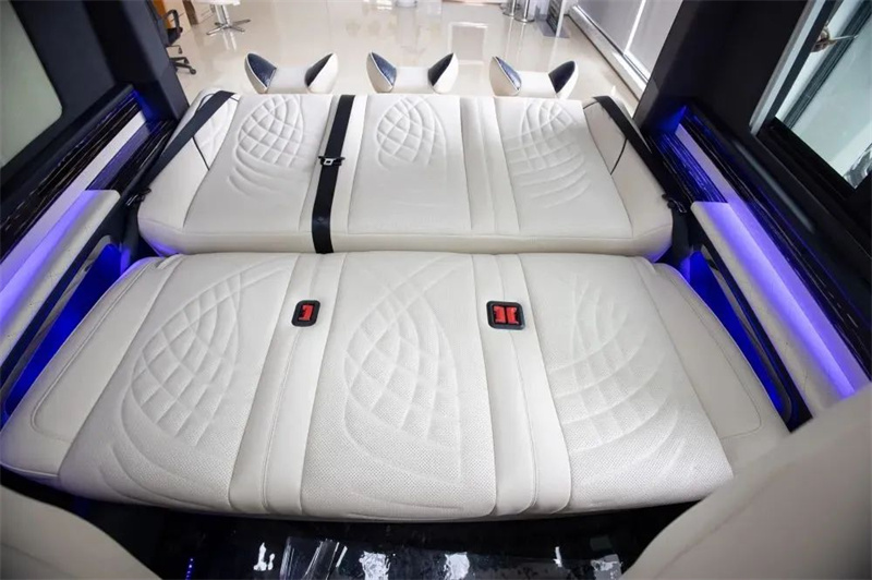 改裝商務(wù)車三連排的沙發(fā)床也可以180度的平躺,方便日常出行困了累了能夠及時(shí)的休息。頂部豪華定制頂燈,造型美麗,色彩鮮明,多款顏色切換,點(diǎn)點(diǎn)星星的頂部襯托著整車,氛圍感也得安排上。